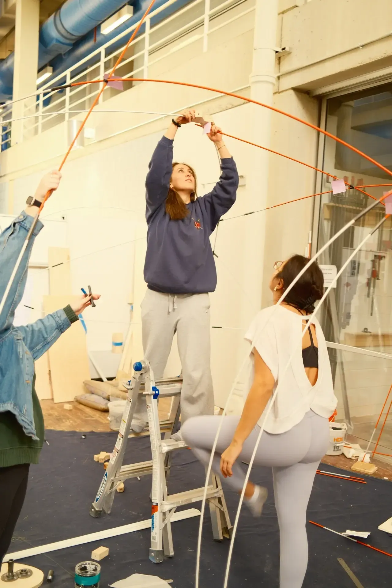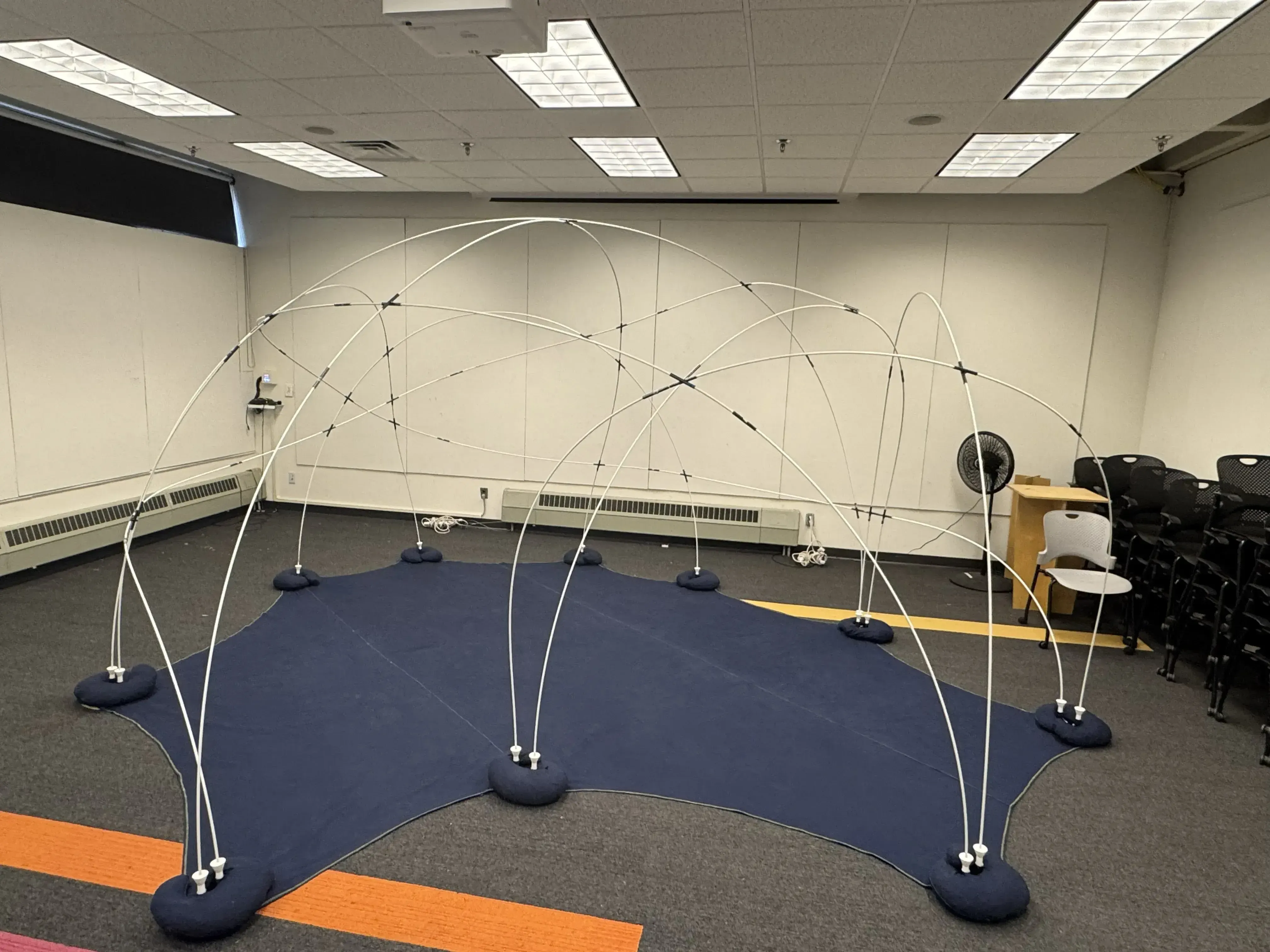 The largest element of the experience, the housing tent, was designed as a partial geodesic dome to draw attention upwards towards space. This project required use of 3D modeling, advanced sewing techniques, welding custom connectors for fiberglass supports, and complex projection mapping for an immersive experience throughout the structure.